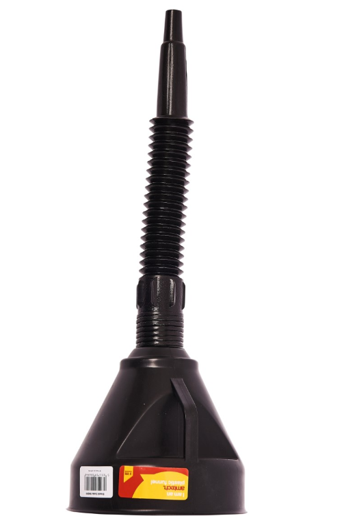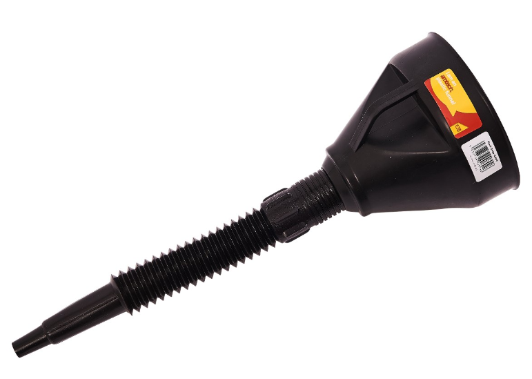 VERSATILE: This plastic funnel has a detachable, flexible spout with an integral gauze filter and is ideal for topping up fluids in vehicles