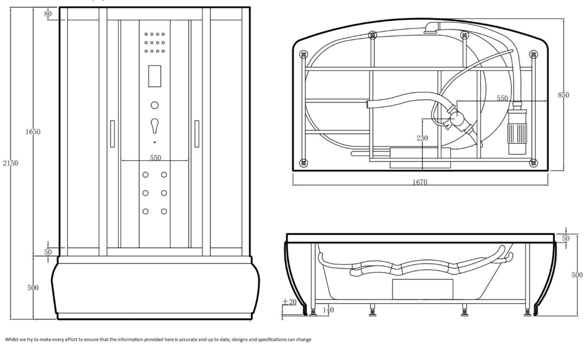 Home Bathroom & Kitchen Bathroom Showers Steam Showers 1670x850mm Black Steam Shower Whirlpool Airspa Bath