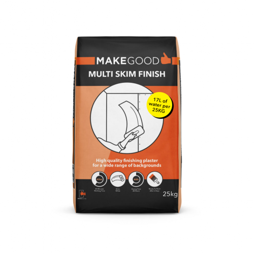Also suitable for use on dry undercoats (dampen background first) and damp undercoats. Providing a smooth, flat and high quality finish Make Good Multi Skim Finish is easy to use and only requires the addition of up to 17L of clean water to prepare it for use depending on the thickness of plaster required and substrate.