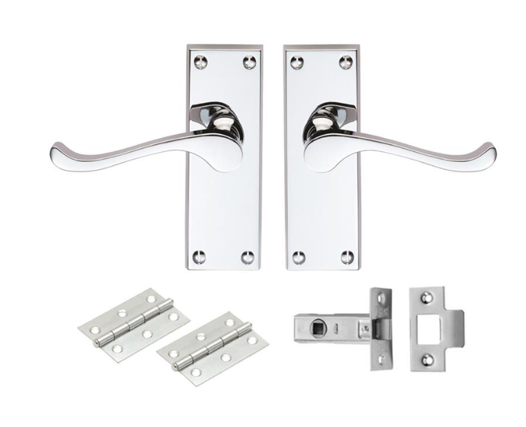 Home DIY Locks Handles and Hinges Vic Scroll Latch Door Pack CHROME